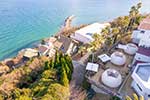 関西エリア 京都府宮津市に位置するグランピング施設。海⽔浴ができるキレイな⼩松浜ビーチが⽬前に広がる絶景のロケーション 。2020年10月28日リニューアルオープンにより、全室客室温泉付きに。